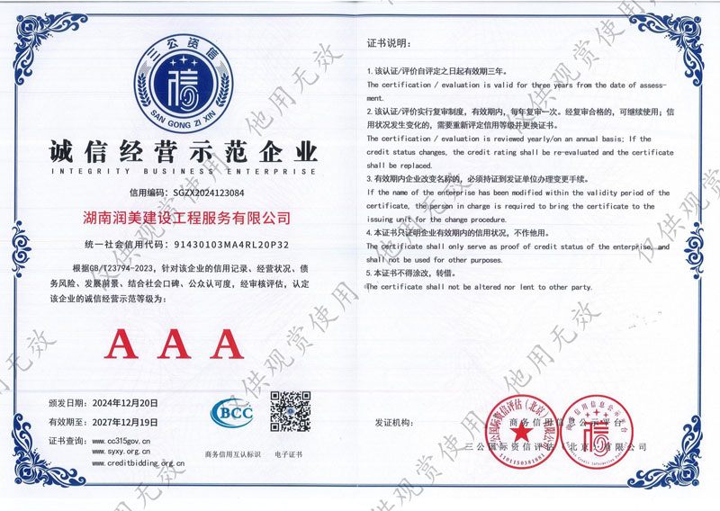 湖南潤美建設(shè)工程服務(wù)有限公司營業(yè)執(zhí)照
